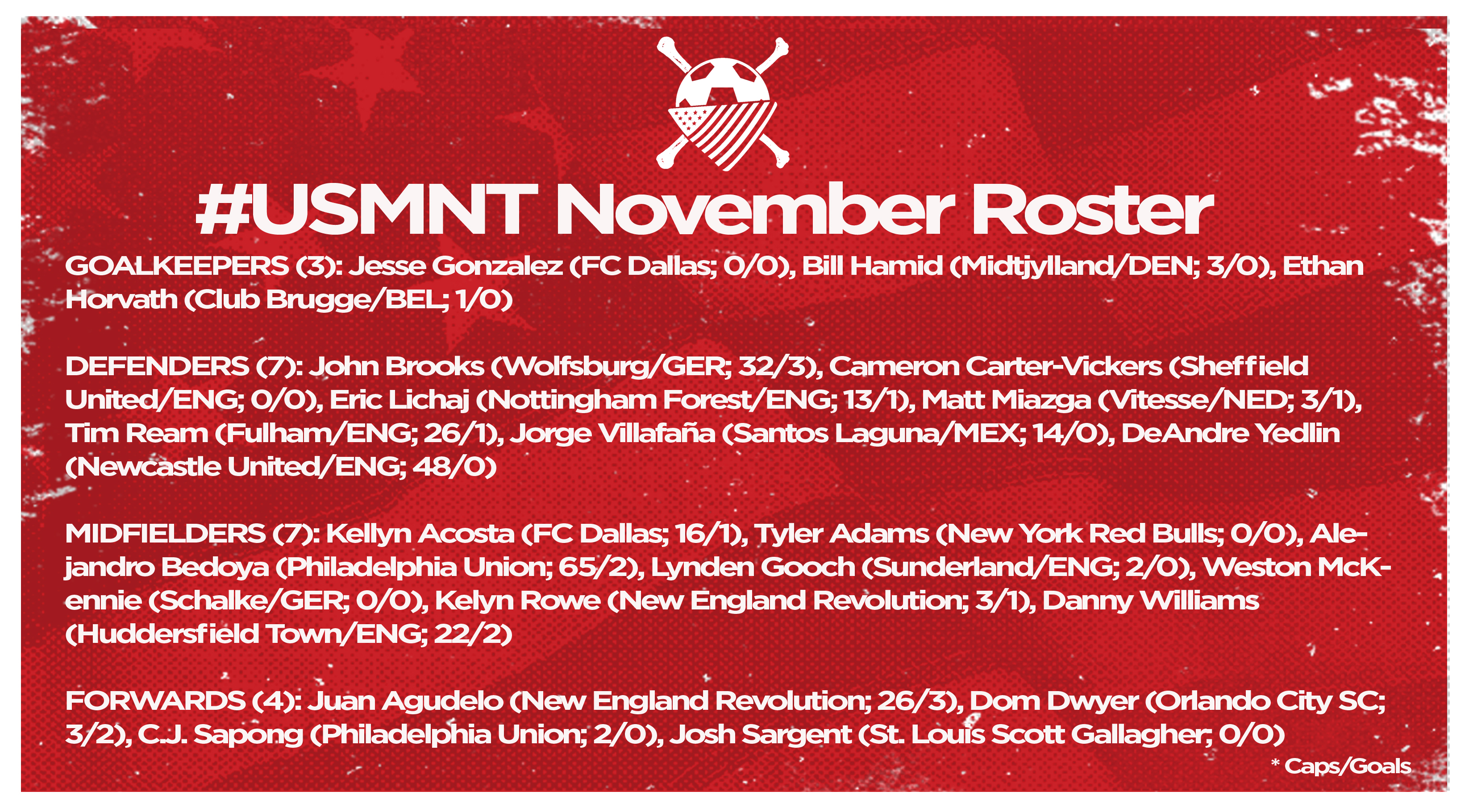- With a friendly against Portugal on the horizon next week and no competitive matches for nearly two years, some new and fresh faces have been called in to the USMNT squad. Interim coach Dave Sarachan announced his 21-man roster that gives us a small glimpse into to the future with the inclusion a number of young yanks like Josh Sargent and Cameron Carter Vickers. Click below to check out the full roster.