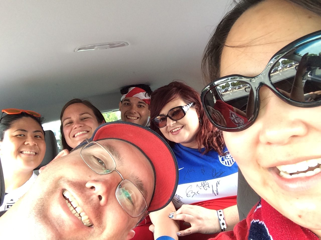 Antonio and I met at the USWNT vs Mexico 2015 Women’s World Cup send off game in Carson, CA. At the time, I was living in the East Bay after getting a teaching job in Oakland. I took a road trip down to Carson with Crystal from AO San Jose, Chris Lopez from AO Modesto and Leslie from AO Oakland. Leslie and I came up with the crazy idea for a one-day turnaround trip during one of our planning meetings for AO Oakland. During early entry, Antonio helped the people from AO LA carry some stuff in. I had taken notice that he was the only one from the Inland Empire Chapter helping out with early entry. After set up our friend Erin from AO Houston offered Leslie, Crystal, and I a ride back to the tailgate. We saw Antonio was walking back on his own, so we offered him a ride. I was about to get into the trunk of the SUV, but Antonio was a gentleman and offered to let me sit with my friends. He didn’t know about the cider that was back there that I had planned on starting to drink, ha. Coincidently, we ended up standing next to each other during the game, and we enjoyed ourselves talking about the team and how excited we were for the Women’s World Cup that summer.