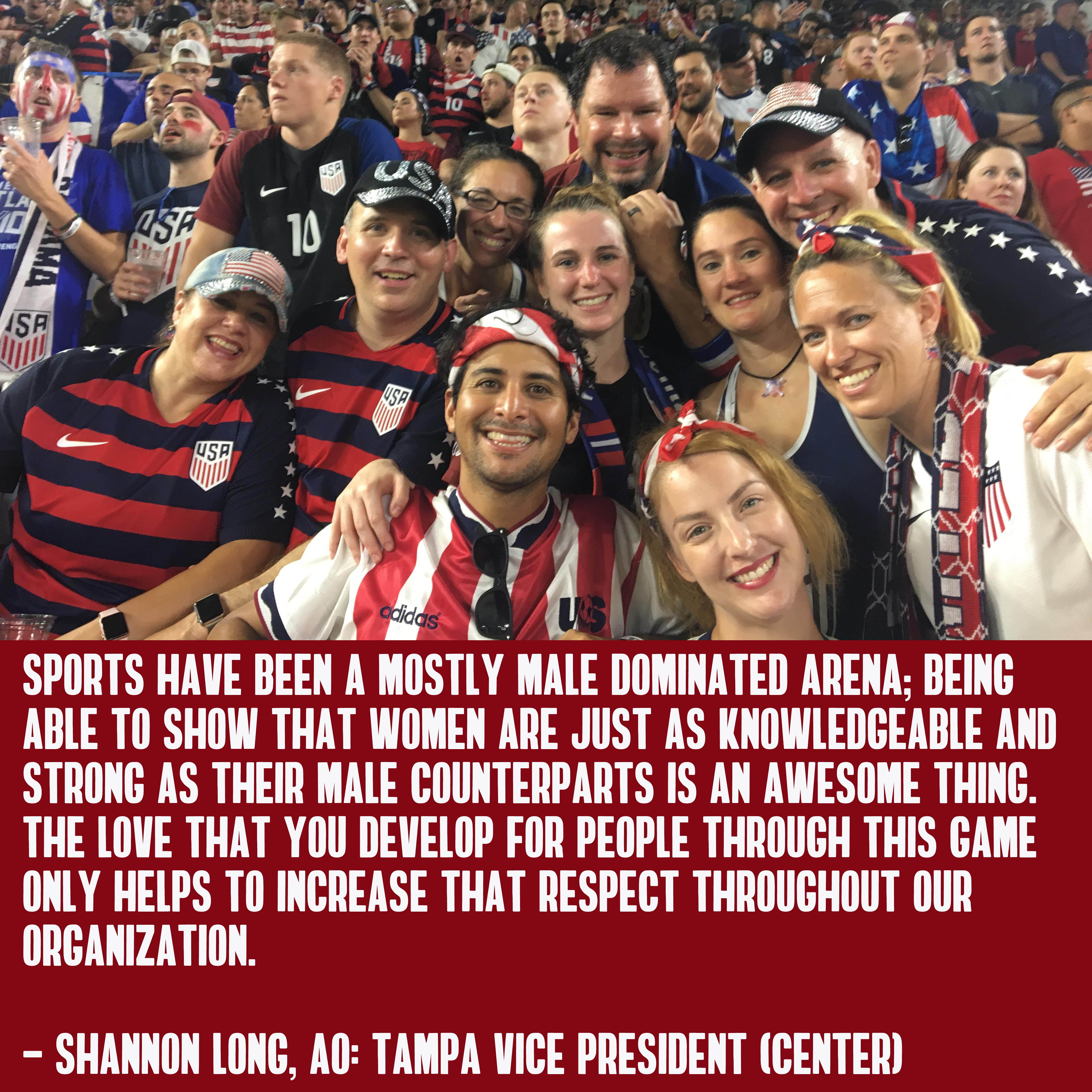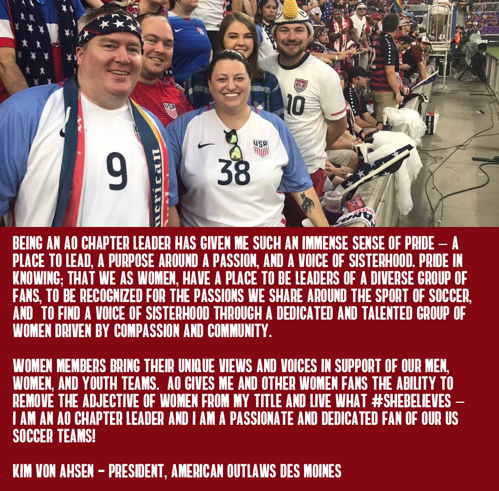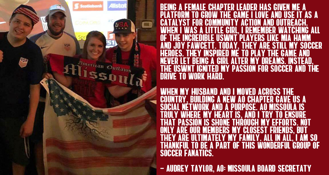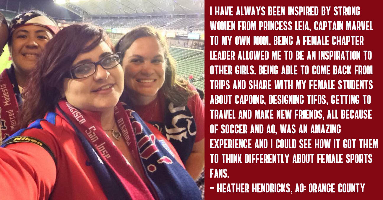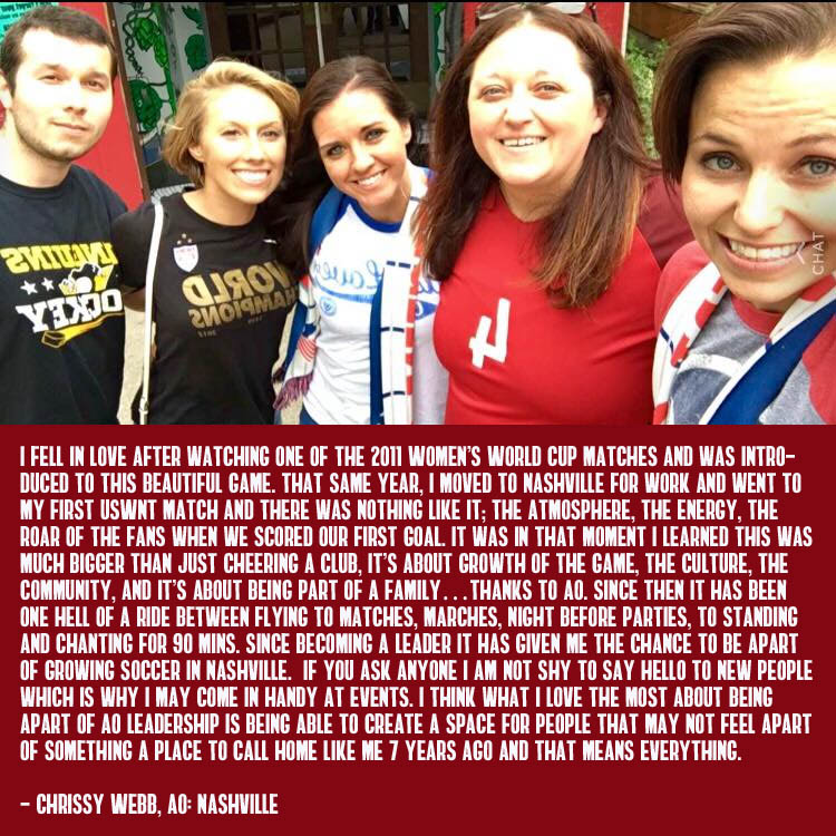Ten years later... things have changed dramatically. At nearly 200 chapters at home and abroad our organization is now fueled by a massively diverse community of leader; both men and women. Additionally we've committed to bringing the same noise and ruckus that we originally set out for just the men's national team to our world champion women's team. Limited only by organizational capabilities (we just didn't have enough people to help out!) we added WNT support in 2013 and haven't looked back. You can find AO at every WNT match behind the goal as usual with events just like we do for our MNT.