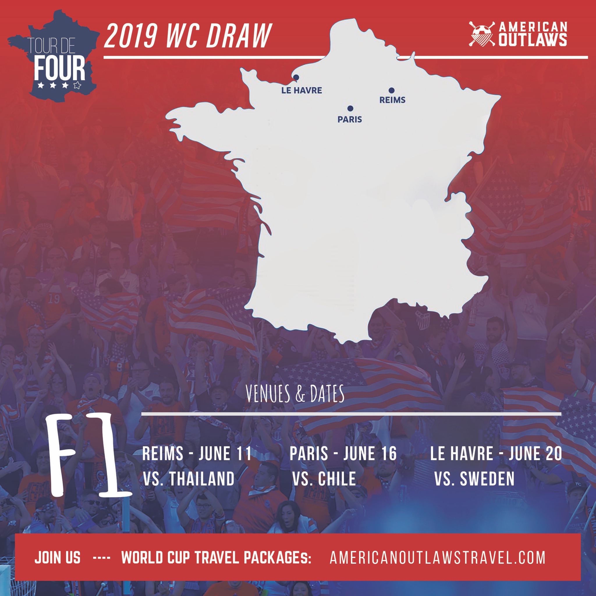 Want more information on the World Cup package we have? Head to http://www.americanoutlawstravel.com to place your deposit and to learn more about our upcoming fun in France as we support the WNT in their quest for a 4th star!